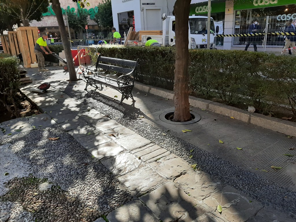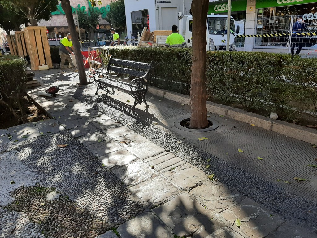 Modifica la situación de los quioscos,  coloca  bolardos para evitar el tráfico. Una  fuente de agua potable y cubre alcorque metálicos, aparte de las mejoras de alcantarillado y riego de las plantaciones.