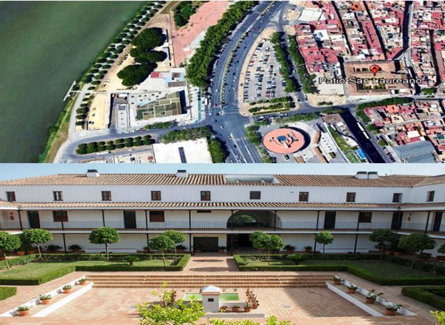 Ubicación dondes estaba.Patio del Colegio de San Laureano.-37°23’37.10″N  6° 0’7.31″W