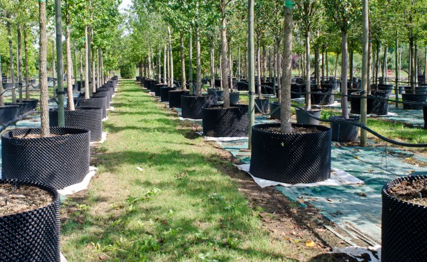 Árboles cultivados en viveros.- Los viveros cultivan árboles de diversas formas, desde macetas de plástico y recipientes de tela hasta árboles cultivados en el campo (raíz desnuda o en cepellones y arpillera).