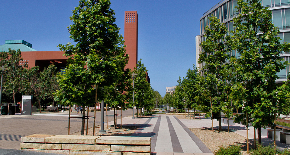 Plantación en bosquetes.– La plantación en bosquetes o, agrupaciones de árboles en espacios abiertos y las islas de árboles urbanos son nombres diferentes para plantar grupos de árboles en un espacio grande. Las plantaciones en bosquete brindan muchos beneficios, como costos de mantenimiento reducidos, protección contra condiciones climáticas extremas y una mayor vida útil de los árboles. Sin embargo, dado que los árboles se encuentran muy juntos, los insectos y las enfermedades pueden moverse rápidamente de un árbol a otro. El hacinamiento también puede convertirse en un problema. La selección y el espaciamiento adecuados de las especies son fundamentales para evitar estos problemas.