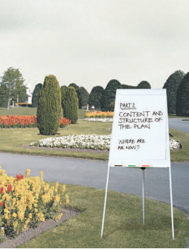 Dado que los planes de gestión se utilizan a menudo para respaldar las solicitudes de subvenciones de capital y esquemas de adjudicación, vale la pena considerar la apariencia y presentación del documento y asegurarse de que cumpla con los estándares. No es necesario gastar mucho dinero en la presentación, pero el uso de gráficos, fotografías, mapas y planos del sitio son de gran beneficio. No existe un formato correcto o incorrecto para el plan. Los planes exitosos varían enormemente en términos de tamaño, estructura y apariencia. La consideración más importante es que el plan cumple su propósito principal de guiar y ayudar en el trabajo de los responsables de conservar, administrar, mantener y mejorar el parque o espacio verde, y mantener a todos los interesados en el sitio informados sobre las prioridades y la dirección de la administración