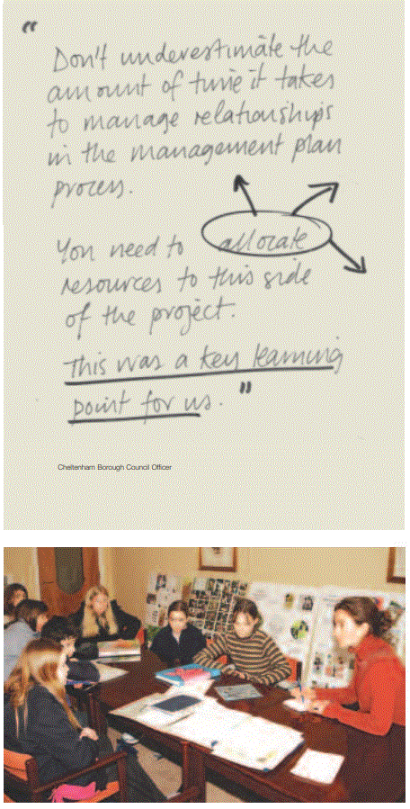 El nivel de recursos necesarios para redactar el plan de gestión dependerá del enfoque adoptado, el tamaño y tipo del sitio y la complejidad de los problemas involucrados. También depende de la cantidad de información que ya tenga. Si se contrata a un consultor, aún será necesario administrar el proyecto y se debe asignar tiempo suficiente para completar esta importante tarea. Será necesario definir el trabajo requerido por el consultor, monitorear el progreso y brindar asesoramiento y tomar decisiones siempre que se desarrolle más de una opción o solución. Sin un enlace regular con el consultor y un grado razonable de participación en el proceso, esta oportunidad de aumentar los conocimientos, la experiencia y las habilidades simplemente se pierde. El enfoque alternativo es hacerlo usted mismo.