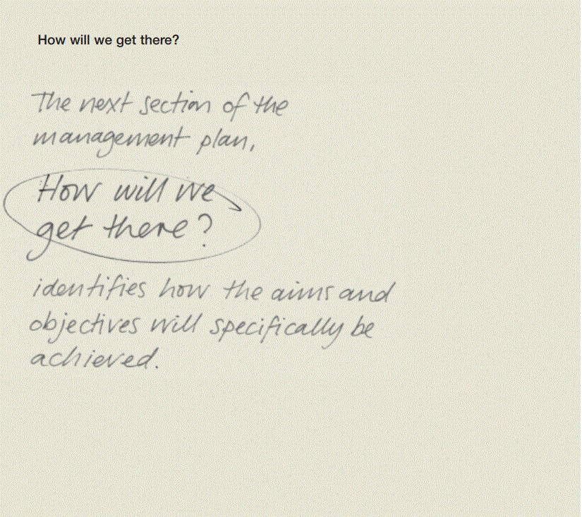 De manera similar, es probable que la segunda sección también sea bastante estática, pero será necesario reflexionar sobre ella anualmente. Es la última parte que probablemente será la sección más dinámica del plan si se utiliza de manera eficaz. Al establecer un plan de trabajo claramente vinculado a sus objetivos con metas medibles, debería ser relativamente sencillo ver dónde ha logrado y dónde no ha logrado el cambio en el terreno. Lo importante es establecer un proceso y un cronograma para el monitoreo y asegurar que una persona sea responsable de liderar esto, preferiblemente el autor del plan o el administrador del sitio.