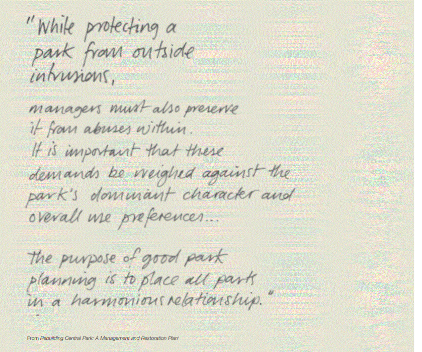 1.- Rebuilding Central Park: A Management and Restoration Plan, E. Barlow Rogers, E.M. Cramer, J.L. Heintz, B.Kelly, P.N.Winslow and J. Berendt, MIT Press, 1987.