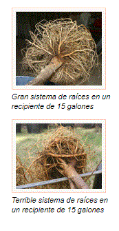 El objetivo es producir un sistema de raíces con raíces rectas que crezcan radialmente lejos del tronco, no desviadas hacia abajo o alrededor de la maceta.