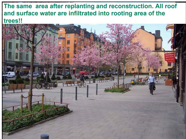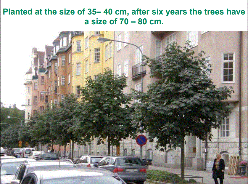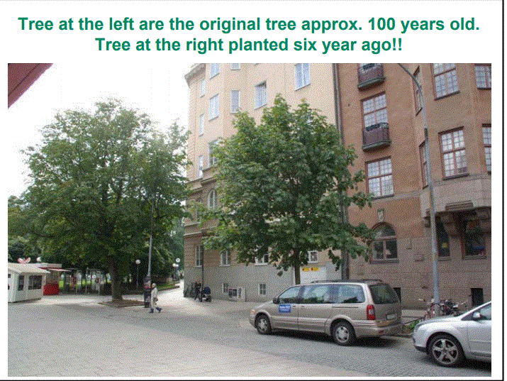 Estocolmo, la ciudad capital de Suecia ha desarrollado un programa de plantación de árboles muy exitoso que muchos expertos creen que produce un mejor crecimiento de los árboles que casi todos los otros métodos  desarrollados para plantar árboles en el centro de la ciudad. aceras.