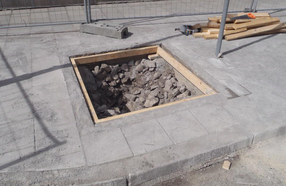 Sobre la base de la investigación de todos los expertos y un proceso de prueba y error, el equipo de plantación de árboles en la ciudad desarrolló un suelo estructural que consta de capas de rocas trituradas de 10 a 15 cm, instaladas en 10 a 12 capas de 25 a 30 cm de espesor. Esto resultó en aproximadamente un 25% – 30% de espacio poroso que está lleno de tierra. Las rocas podrían ser cualquier piedra nativa disponible, pero el Sr. Embren sintió que sería mucho mejor usar aceras de concreto reciclado roto en lugar del granito nativo. Así comenzó un esfuerzo por plantar nuevos árboles en trincheras llenas de piedra por toda la ciudad.