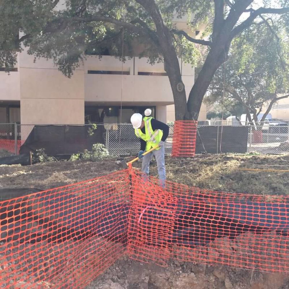 Se debe instalar una barrera o cerca de protección de al menos 1.2 m de altura alrededor de cada árbol o grupo de árboles que se protegerá y preservará. La protección para árboles se instalará antes de que comience cualquier actividad de construcción y se mantendrá durante la duración del proyecto hasta la fase de paisaje. No se almacenarán materiales de construcción, ni se operarán equipos y / o edificios de almacenamiento temporal o remolques de trabajo dentro de esta zona de protección.