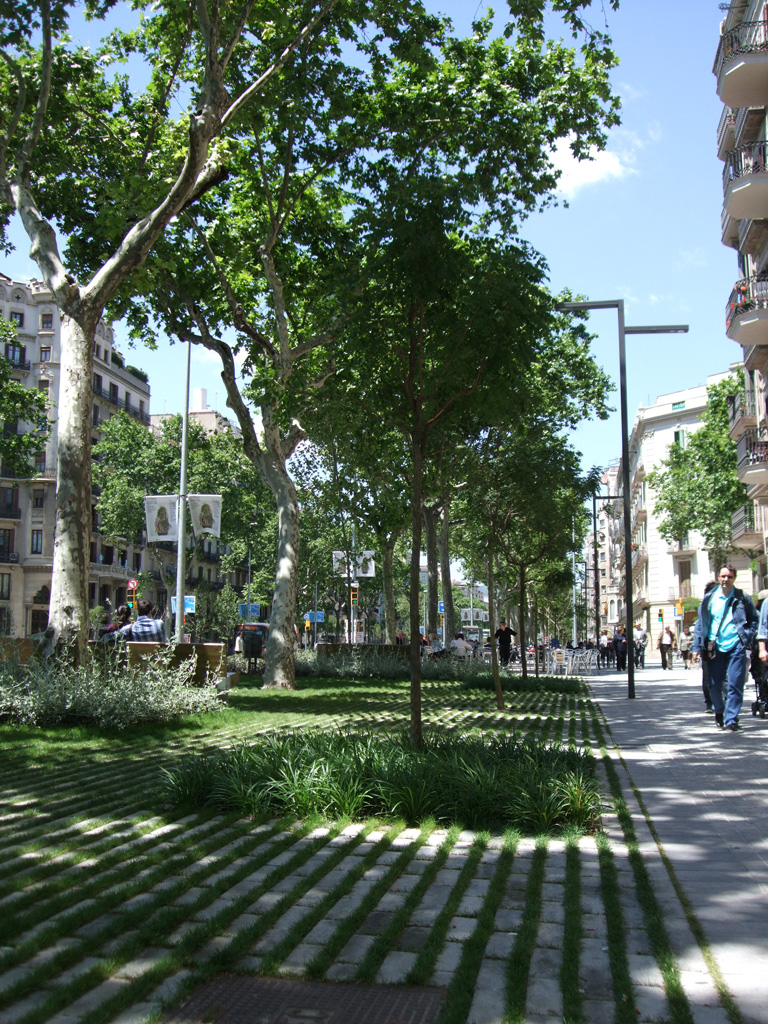 Se pueden utilizar adoquines entrelazados alrededor de la base de los árboles. Se coloca una tela geotextil sobre el suelo, luego una capa de roca a compactar, luego geotextil y finalmente la capa de arena. Los adoquines están asentados en la arena y los adoquines y la roca son permeables. Los adoquines necesitan una restricción de borde que puede ser la acera, un material de acero en ángulo, plástico o madera. A medida que el árbol crece, se quita la restricción del borde, se aumenta el tamaño y los adoquines se pueden reutilizar en otros árboles.