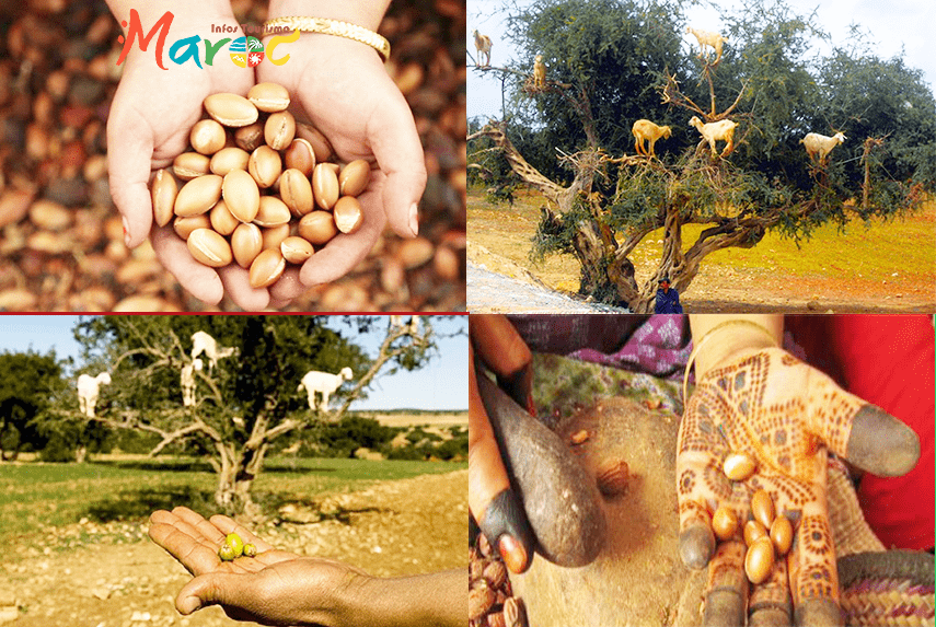 El árbol de argán es un pequeño árbol endémico de Marruecos, presente principalmente en la llanura de Souss en el árido suroeste del país. El árbol de argán toma su nombre del bereber «argân», pero a veces también se le llama el olivo de Marruecos, el árbol de hierro o incluso el árbol de la cabra. De hecho, estas últimas son particularmente aficionados a sus hojas y frutos y suelen trepar por ellos, a pesar de las espinas de sus ramas. El aceite de argán se extrae de las nueces de argán, un verdadero oro verde marroquí, que está catalogado como cultivo patrimonio de la UNESCO.