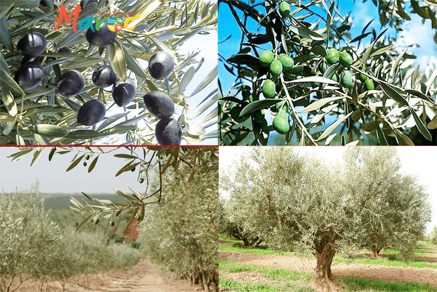 El olivo ocupa una superficie de 560.000 ha, incluidas 220.000 ha en zonas de regadío (Haouz, Tadla, Souss-Massa, Moulouya, Nador, Boulemane, Oujda, El Kelaa, Marrakech, Chichaoua, Bénimellal, Ouarzazate, Tafilalet. Figuig, Essaouira) , 200.000 ha en zonas montañosas (Chefchaouen, Taounate, Taza, Tánger, Tetuán, Azilal, Khenifra, Al Hoceima), 100.000 ha en zonas bour (secas) favorables (Sefrou, El Hajeb, Fez, Meknes, Sidi Kacem, Gharb, Loukkos , Benslimane) y 40.000 ha repartidas entre Safi, Settat, Khemiset y Khouribga.