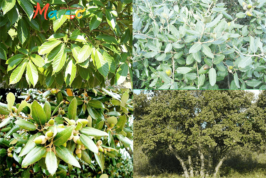 El alcornoque (Quercus suber), que es un árbol típicamente mediterráneo y es también un gran destacado de la flora de Marruecos. Necesita luz intensa para vivir y soporta bien el calor, aunque no crece en climas extremadamente secos. Puede alcanzar los 25 metros de altura, con un porte naturalmente esbelto, aunque las podas le pueden dar un aspecto más torcSu fruto es la bellota, ampliamente usada como alimento para el ganado porcino. Su madera es dura, muy valorada para la fabricación de utensilios. Y su corteza se emplea para la elaboración de corcho, que se arranca cada 10-15 años, aproximadamente