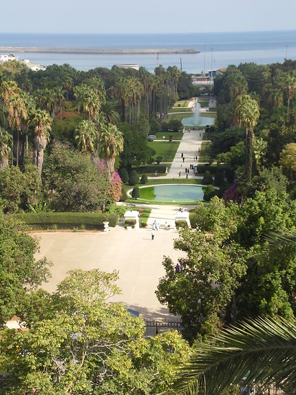 El jardín formal francés, en el oeste, con 5 terrazas una tras otra, con una hermosa vista al mar.