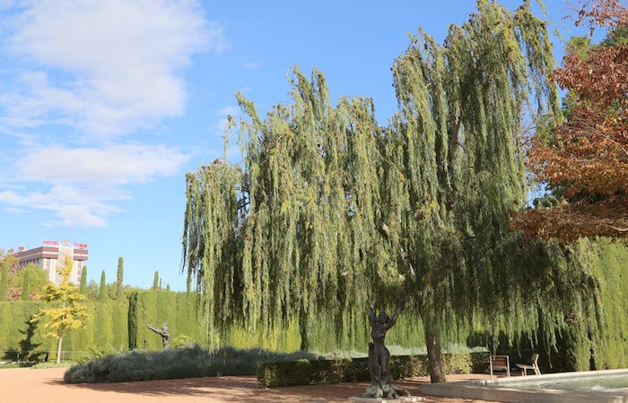 La disposición del arbolado refuerza la composición geométrica, con plantación de pinos piñoneros (Pinus pinea), jacarandas (Jacaranda mimosifolia), grevilleas (Grevillea robusta), falsas acacias (Robinia pseudoacacia) y moreras (Morus alba), entre otros.