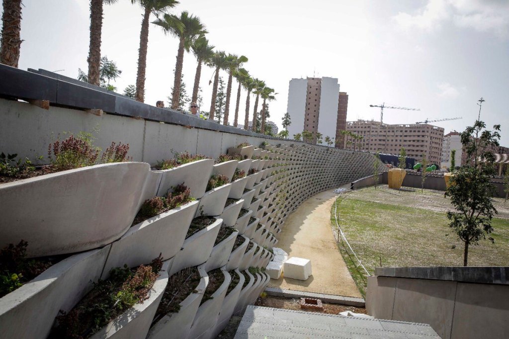 Muros verdes: mil trescientas jardineras que los cubren. Los muros verdes son las estructuras de hormigón que delimitan y dan forma al Jardín de la Infancia y al Jardín de la Huerta. Se han plantado unas trece mil plantas de doscientas especies diferentes para dotar a los muros de un manto verde.