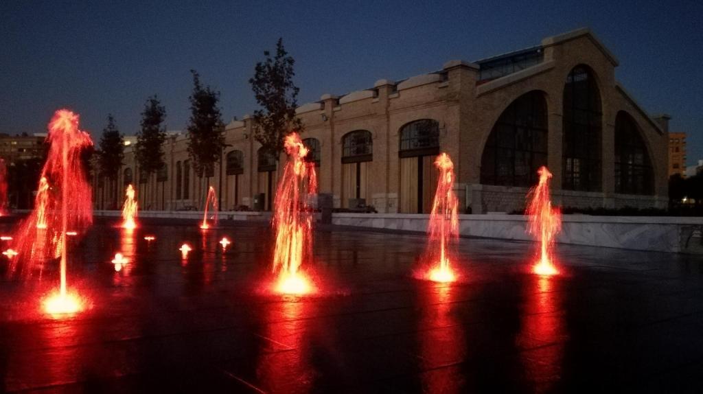 Fuentes y canales de agua: casi seis mil metros cuadrados de láminas de agua, incluyendo la espectacular Panderola con sus ciento treinta y cinco surtidores dotados de focos led que permiten realizar innumerables juegos de agua y color.