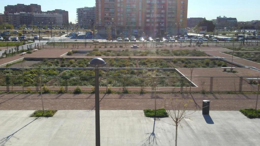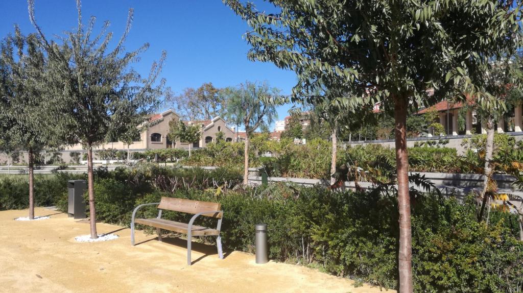 Por último, en la zona Este exterior al muro se ha creado un nuevo ajardinamiento sobre la estación de metro de Ayora.