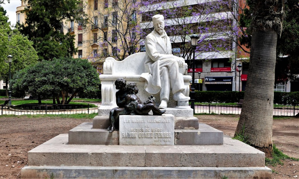 A partir de entonces La Glorieta queda reducida a la extensión que aproximadamente tiene hoy, con algunos monumentos dedicados a personajes valencianos destacados como el del Doctor Gómez Ferrer obra de Paredes, menos los niños a sus pies, que son de Luis Bolinche; el busto dedicado al pintor Francisco Domingo Marqués, fundido en bronce, de Mariano Benlliure, que estuvo antes en las Alamedidas de Serranos, y los de los pintores Muñoz Degrian y Joaquín Agrasot, ambos obra del escultor Francisco Maroc y Díaz -pintado, el primero coronando un banco de planta y perfiles curvos; el segundo en bronce, como lo fue también el primitivo del sainetero Eduardo Escalante, obra de Mariano Benlliure, que robada la cabeza, fue sustituida por una de mármol, obra del mismo Marco, situando este monumento a Escalante en un jardín del Cabañal, quedando reseñado allí.