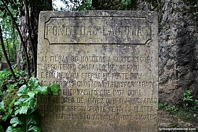 Esta fuente todavía tiene un acceso, a través de un arco apuntado gótico, que data del siglo XIV. La otra fuente de la finca, algo más alejada de la primera en relación con el convento, fue nombrada por Luís de Camões en «Os Lusíadas», como «Fonte das Lágrimas», refiriéndose a que nació de las lágrimas derramadas por Inês cuando fue asesinada por orden de Alfonso IV de Portugal.