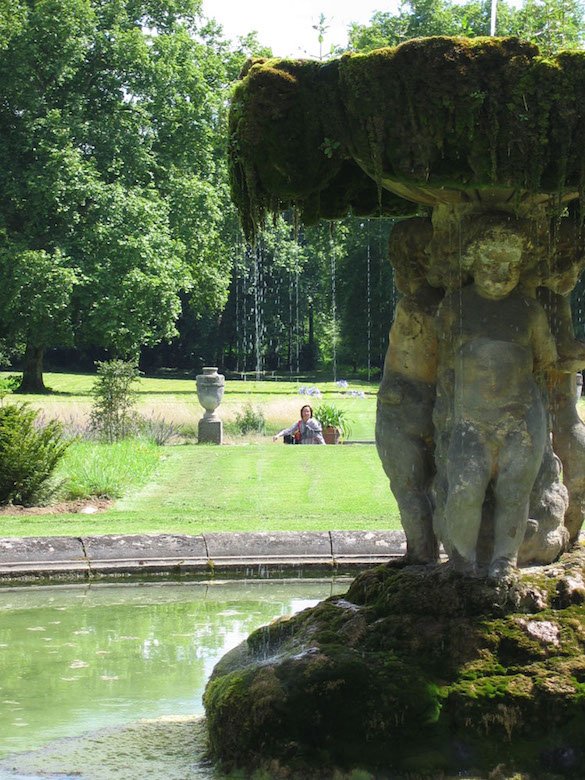 Desde principios del siglo XVII existía un gran parterre adosado frente a la fachada sur del castillo. Su palangana circular fue decorada hacia 1900 con una palangana de piedra portada por 3 titíes, que provenían de las demoliciones del parque Vaux-le-Vicomte. La fuente sigue siendo alimentada por el mismo acueducto subterráneo, que le lleva agua durante 3 km.