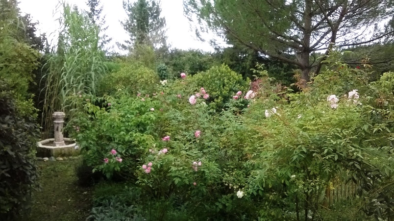 Herbáceas y numerosas plantas de follaje gris, adaptadas a terrenos secos, se entremezclan con más de 700 rosales, viejos y nuevos, sobre todo edificantes y ajardinados, entre los que se encuentran 460 variedades diferentes.