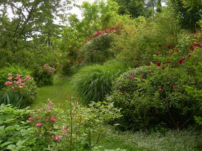 Numerosas rosas trepadoras se elevan para atacar estructuras y árboles o arbustos que resaltan las rosas sobre un fondo de verdor, con una búsqueda de armonía de colores no solo de las flores, sino también del follaje. La elección de variedades cumplió criterios de mayor floración, flexibilidad de las ramas y follaje ligero, con una preocupación permanente por el aspecto paisajístico.
