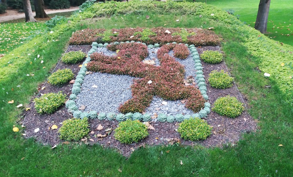 El jardín formal está envuelto en el jardín paisajístico. El jardín francés incluye: