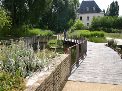 - el camino principal del jardín regular que extiende el hábitat y conecta el lago. El jardín paisajístico contrasta con el jardín regular, está formado por un mosaico de lugares con atmósferas cambiantes y variadas: un bambú, claros, un huerto, un huerto que demuestra el cultivo orgánico que presenta vegetales olvidados o especiales.