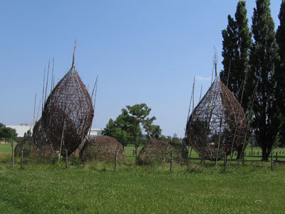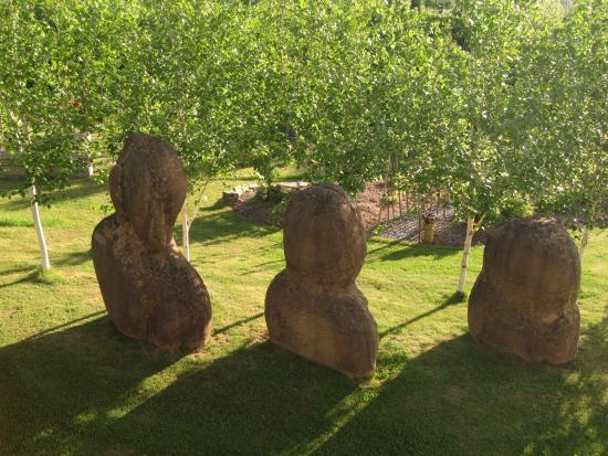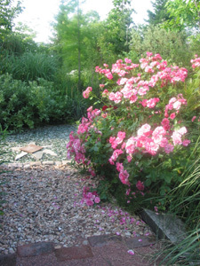 2014: Se hizo un nuevo macizo de Patty en el otoño con peonías, mucha salvia, un fastigié Sambucus púrpura, un Hamamelis, dos rosas y algunas otras plantas perennes. En la plaza cercana a la cantera se han colocado dos grandes tinajas de aceite que sirven como diversas instalaciones artísticas. Por otro lado, me permití poner poesía por todo el jardín: piedras, regaderas, estacas de madera, etc. de la poesía que escribí.