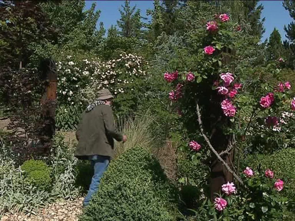 Unos pocos árboles, arbustos, la colección de rosas, bulbos, plantas perennes, a cada planta se le dio la ubicación que le conviene. Donde comienza la pendiente, los antiguos construyeron muros de piedra seca para aumentar el área cultivable y la profundidad del terreno. Porque el suelo aquí es muy pobre, ácido, esquistoso y se lixivia regularmente. Por otro lado, contiene humus, es drenante y tenemos la posibilidad de regar en cantidad gracias a la presencia del río. Es un jardín sencillo, sin artificios pero construido, aunque no lo parezca. La tierra apenas está fertilizada y las plantas aquí tienen un tamaño normal.