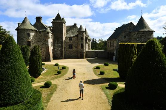 En 1695, el mariscal de Allègre, propietario de la finca, llamó al taller de André Le Nôtre para diseñar el jardín y plantar las glorietas, altos setos de carpes y hayas, únicos en su especie a esta altitud (900 metros). Posteriormente, abandonada, fue restaurada en 1965 por el actual propietario. El castillo, por su parte, data del siglo XV y fue remodelado internamente en los siglos XVII y XVIII.