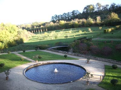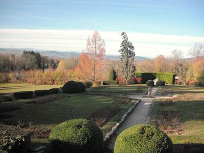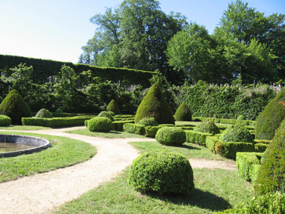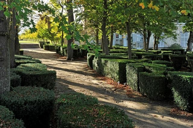 La composición de los jardines es rigurosa, largas terrazas que se extienden hasta desaparecer en el paisaje, la regularidad de las hileras de tejos cortados y la simetría de los lechos de bordados de boj desplegando sus motivos ornamentales sobre un fondo de caliza blanca. Estos jardines ingeniosamente organizados solo revelan gradualmente sus atractivos.