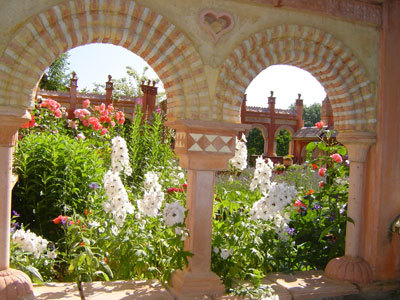 Gran jardín de rosas en invernadero con 20.000 rosales, colección de rosas botánicas y rosas antiguas de 500 variedades. Numerosas zonas ajardinadas: Arboledas de Venus, Hermes, Baco, la Virgen, el arquero, el jardín de otoño con su túnel florido, numerosas estatuas y la rosa en todas sus formas.