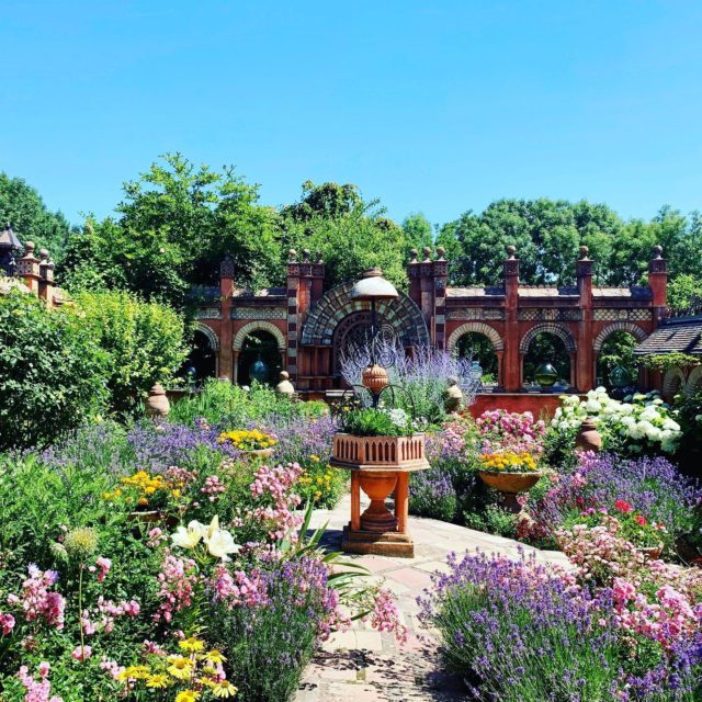 Los callejones y los alrededores del castillo están coloreados según las estaciones de abundantes flores y asombroso follaje. Viñedos, baguenaudiers, árboles de Judea, topiarios de boj, cornejos, cotoneaster, carboncillo, hibisco, mahonia, syringa, zumaque, sorbaria, spirea, lila, viburnum, azalea y rododendron conducen al visitante entre un agradable laberinto de formas y aromas.