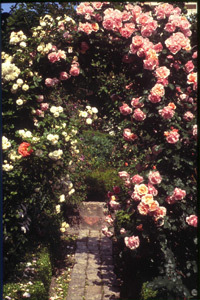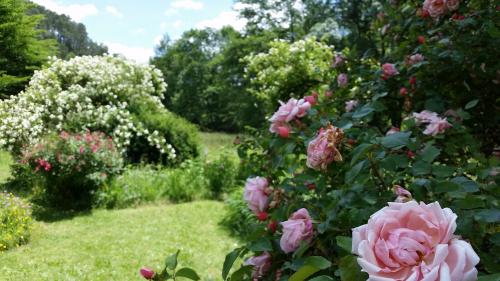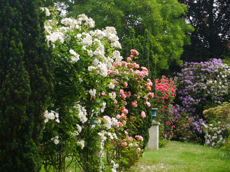Cinco pérgolas, 65 arcos, cuatro grandes pórticos permiten enredar las rosas sarmentosas, las lianas y las rosas botánicas invaden cedros, cipreses, pawlonias, árbol de Judas, jabóneros y grandes prunus en paz.