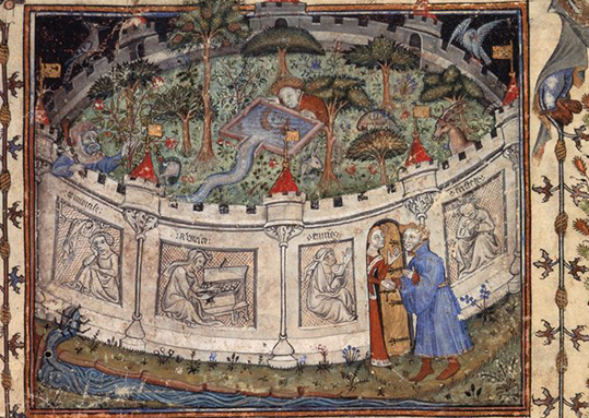 El monumento «El Bestiario Fantástico» dejó volar la imaginación literaria del precioso escrito «Le Roman de la Rose». El visitante llegará al encuentro del propietario Déduit y continuará su camino a través de sucesivos recintos que le conducirán hasta una fuente donde verá el reflejo de la rosa.