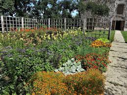Más allá de la religión cristiana solamente, ciertas plantas se asocian incluso con referencias mitológicas como el símbolo del pie de alondra de Virgilio. Finalmente, este simbolismo también resurge desde el huerto donde encontramos manzanos de los benedictinos y perales del buen cristiano. En total, alrededor de un centenar de plantas se presentan en los ocho módulos delimitados del jardín. La organización de las plantas por módulos se esfuerza por mantenerse fiel a los viejos patrones: – Dos están reservados para plantas medicinales y aromáticas: hierba callejera, estragón, cebollino, toronjil, cebollas perpetuas y otras santolinas. – Otros dos incluyen principalmente huertas como rábanos, frijoles, papas y ciertas especies de repollos resistentes. – En cuanto a los otros cuatro módulos centrales, están menos organizados y mezclan diferentes familias de plantas.