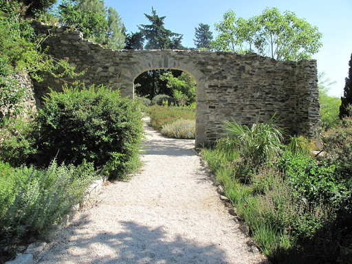 Situado al pie de las murallas del pueblo de La Garde-Adhémar y de una iglesia del siglo XII, este jardín en terrazas tiene una superficie de 3000 m².