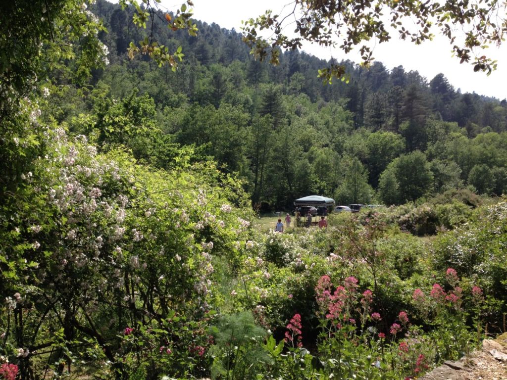 El sitio está rodeado de bosques, encinas al sur y castaños al norte. Es debajo de un magnífico edificio antiguo (que data al menos del siglo XVIII) que el jardín se extiende apenas visible desde la carretera sin saber realmente dónde comienza y dónde termina. De hecho, este fondo del valle se ensancha en un lugar llamado Berty en el sitio donde dos grandes de casi una hectárea cada uno bordean el río, más arriba, son solo bosques.
