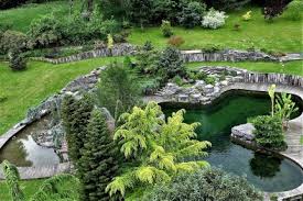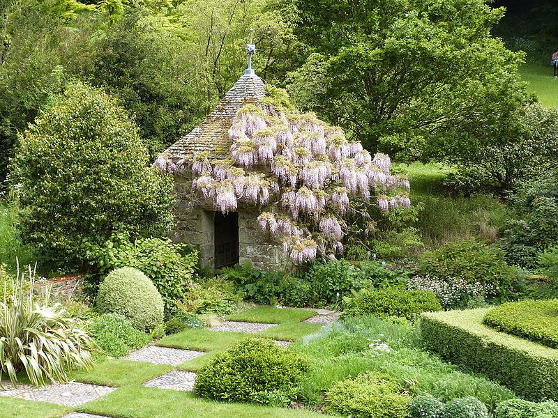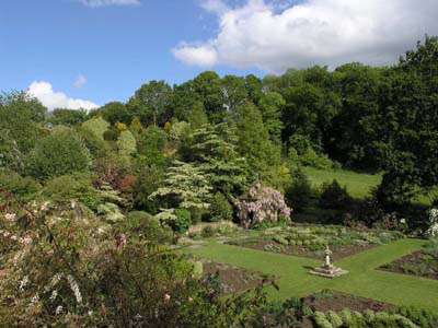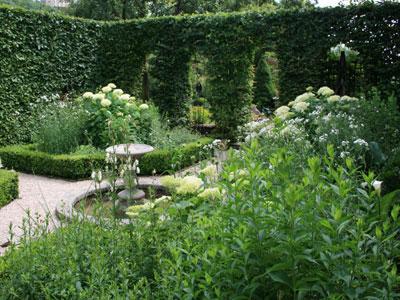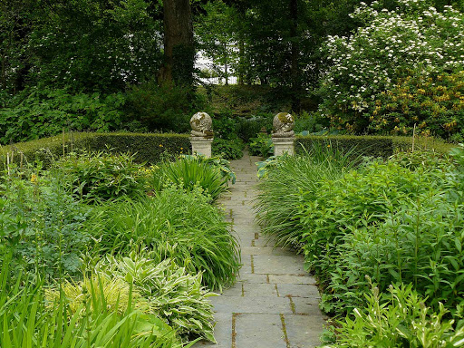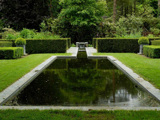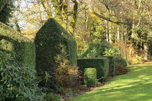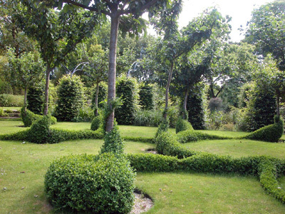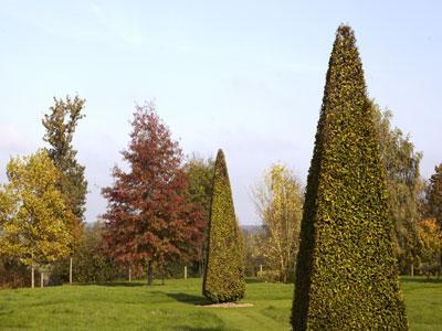 Una serie de “habitaciones” se suceden en torno a una casa solariega de los siglos XVII y XVIII, en un sitio accidentado, en medio de manantiales y bosques. Gran cantidad de topiarios. Muchos elementos minerales.