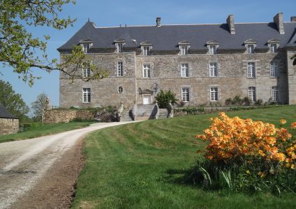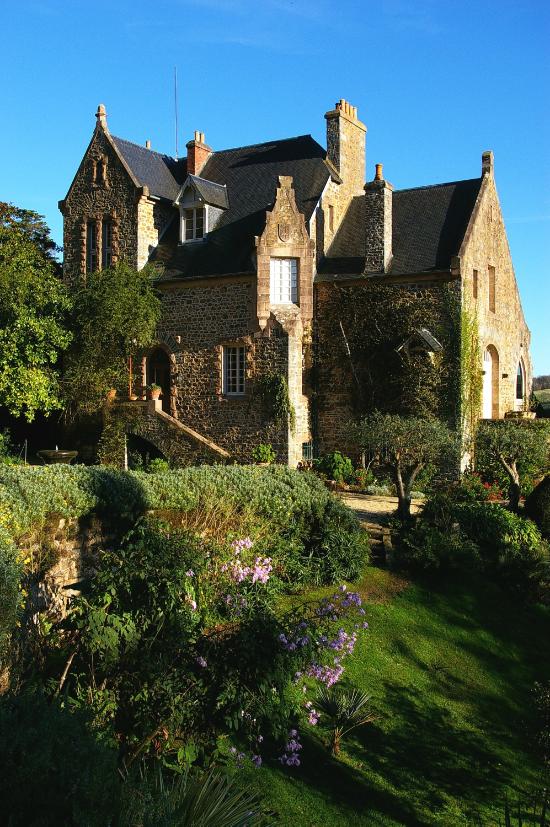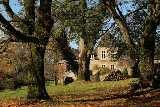 Edificio del siglo XIX rodeado por un parque de hermosos árboles plantados alrededor de 1850: con doble callejón de secuoyas gigantes, arboleda de cedros libaneses, hayas púrpura, fresnos dorados, tulipaneros, en el corazón de una aldea muy florida formada por edificios agrícolas transformados en bed and breakfast rústicos; estas viviendas están enterradas bajo glicinas, rosas y hortensias y largos callejones de peonías rosa pálido e iris azules, lavanda que conducen al jardín de plantas medicinales a través del patio de los monjes, el patio secreto y la fuente para terminar en el jardín de magnolias sin dejar de pasar por alto los inmensos macizos de rododendros, azaleas y alfombras de brezo.