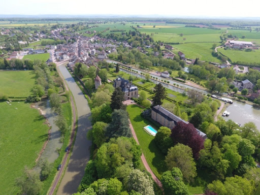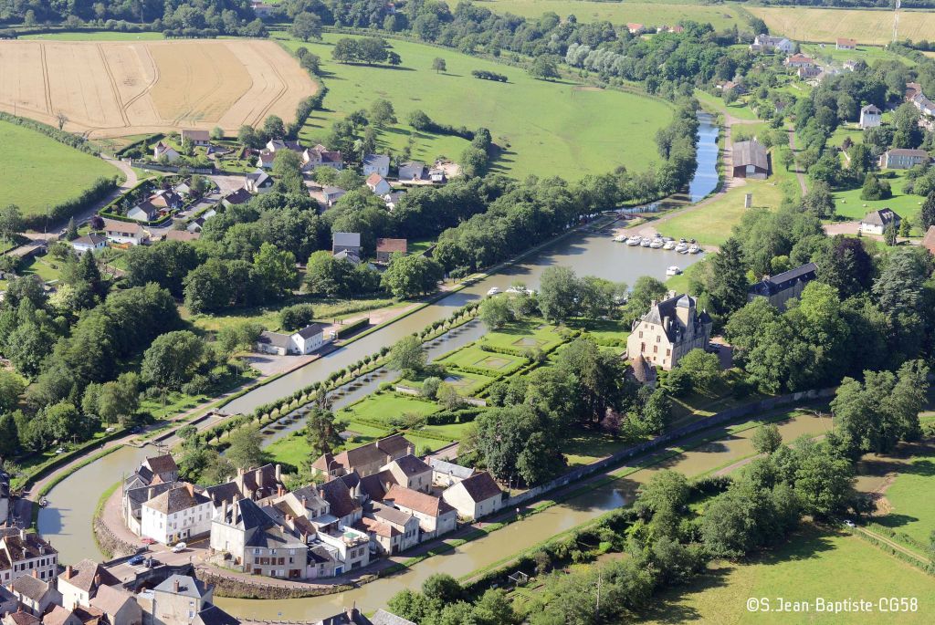 El castillo en el borde del pueblo está ubicado en un afloramiento rocoso en el bucle del río Aron y el canal Nivernais. Se accede a través de un parque de estilo inglés diseñado por el conde Lavenne de Choulot en 1830.
