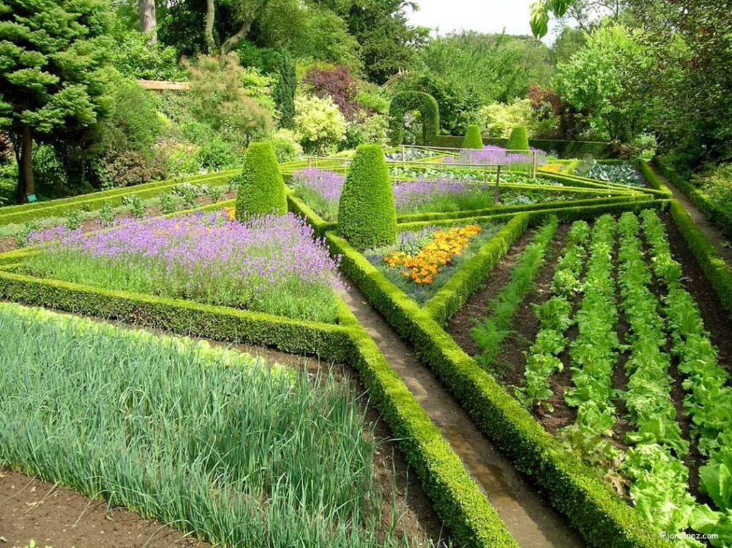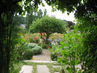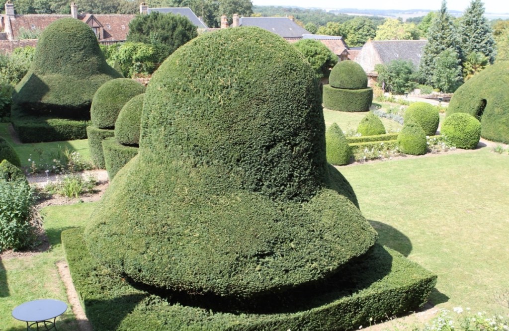 La tradición de los jardines cerrados de la Edad Media también se evoca por las diferencias en el nivel del césped y por el diseño del parterre principal que está hecho de atajos de perspectiva académicos, porque en la época medieval la perspectiva no existe. Es con esta preocupación por la continuidad que los setos de boj tienen la mitad de altura a la llegada que a la salida y, por lo tanto, aumentan el efecto de concentración.