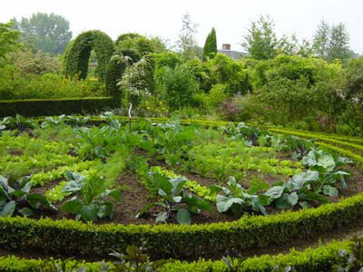 En lo alto del foso, se cultivan verduras que aparecen en el Capitulaire de Villis (Carlomagno año 800), cereales y legumbres ancestrales en tablas dibujadas según el plano de la Abadía de Saint Gall. Nísperos, castaños, membrillos, manzanos y perales, ciruelos también encontraron su lugar en estos jardines.