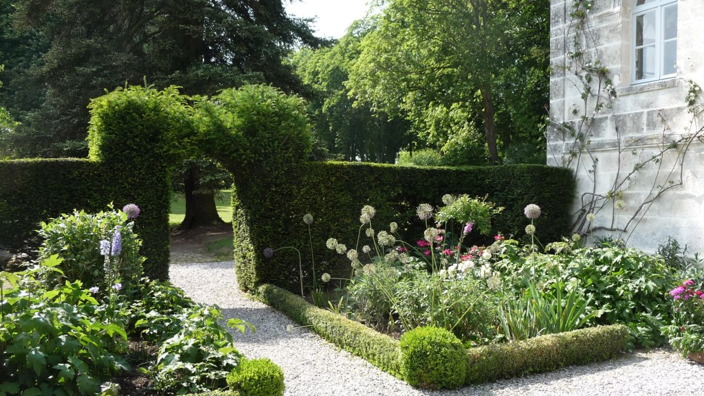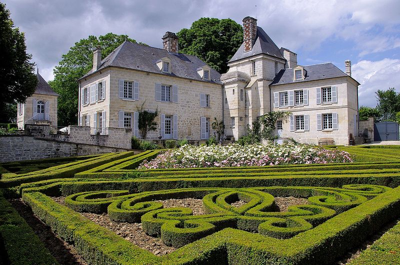 El jardín probablemente data del siglo XVII. Para ser comparado con el famoso jardín topiario inglés de «Levens Hall» (1694) pero arreglado al estilo francés, con simetría, medida y serenidad. Único en Francia.