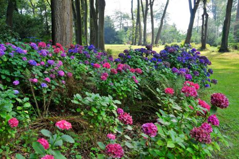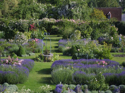 Los aromas de los viburnums y otros arbustos en flor son seguidos por los de 400 variedades de rosas antiguas o inglesas que se pueden disfrutar en muchos callejones pequeños. Una colección muy fina de hortensias (alrededor de 180 variedades, incluidas muchas variedades japonesas) también llega a variar los placeres, ofreciendo con las plantas perennes flores para admirar hasta las heladas.