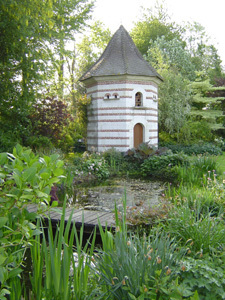 Un palomar, un pequeño pozo, algunas cabañas, numerosos miradores y bancos contribuyen a su decoración. El encanto de este jardín maduro reside tanto en su encanto romántico como en la riqueza de sus plantaciones.