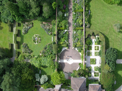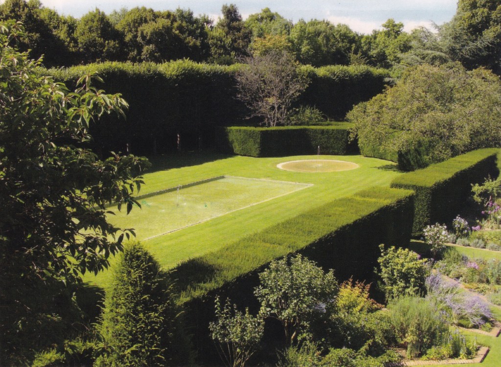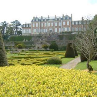 Consta de numerosos topiarios y una gran cuenca construida con el espíritu del siglo XVII. Frente a la parte abierta del castillo, hay una capilla notable, un invernadero y otras dependencias. Finalmente, ha surgido un nuevo jardín renacentista italiano, todo en un entorno verde, cedros, hayas púrpuras, céspedes y flores.