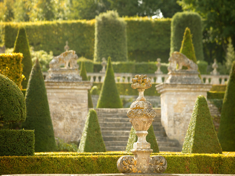 Estos raros elementos de época se han restaurado escrupulosamente; y por lo demás, son ellos los que dieron la medida y el tono de los nuevos jardines. Al rechazar la opción de una reconstrucción anacrónica de los jardines franceses al estilo del Grand Siècle, Jacques García tuvo que ponerse inmediatamente del lado de una obra contemporánea basada en la fuente antigua. La inspiración del momento en las formas de siempre: este habrá sido el principio rector de un parque decididamente actual, eclosionado en el marco de una estructura tradicional.