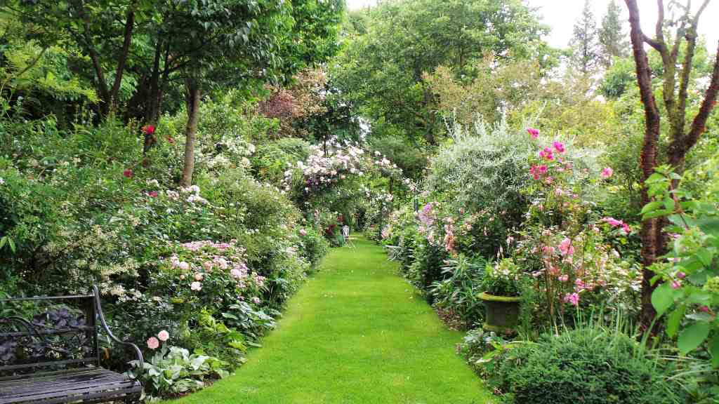 Primero, tenemos que tomar Dante’s Alley, un círculo perfecto para hacer nuestra ruta simbólica. Un regreso formado por rosas desarmadas y plantas herbáceas nos conduce a un gran callejón de rosas que asciende hacia la parte inglesa. Una gran colección de bulbos florece en primavera.